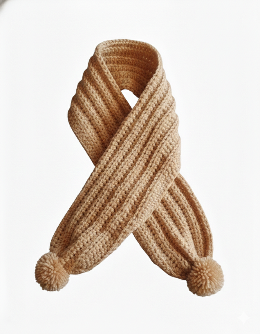 Haakpatroon combi geribbelde sjaal, muts en wantjes