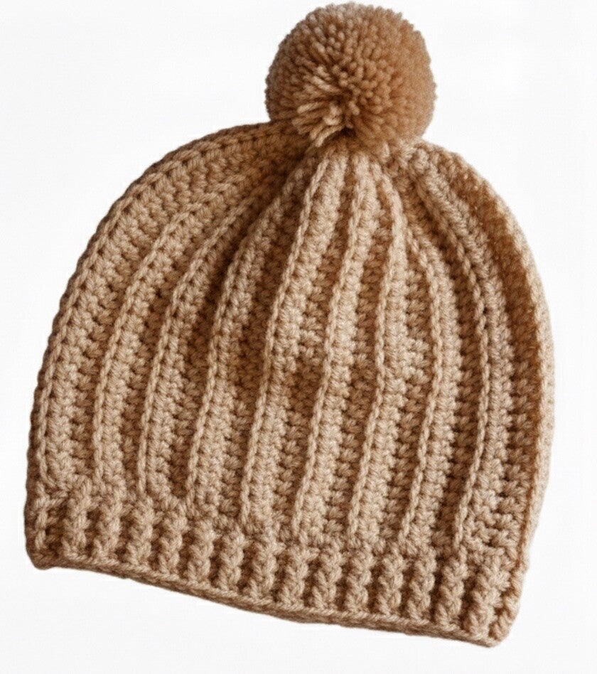 Heerlijk geribbeld mutsje met pompom. De maten die in dit patroon zijn weergegeven zijn; : 0-6/ 6-12/36 maanden.