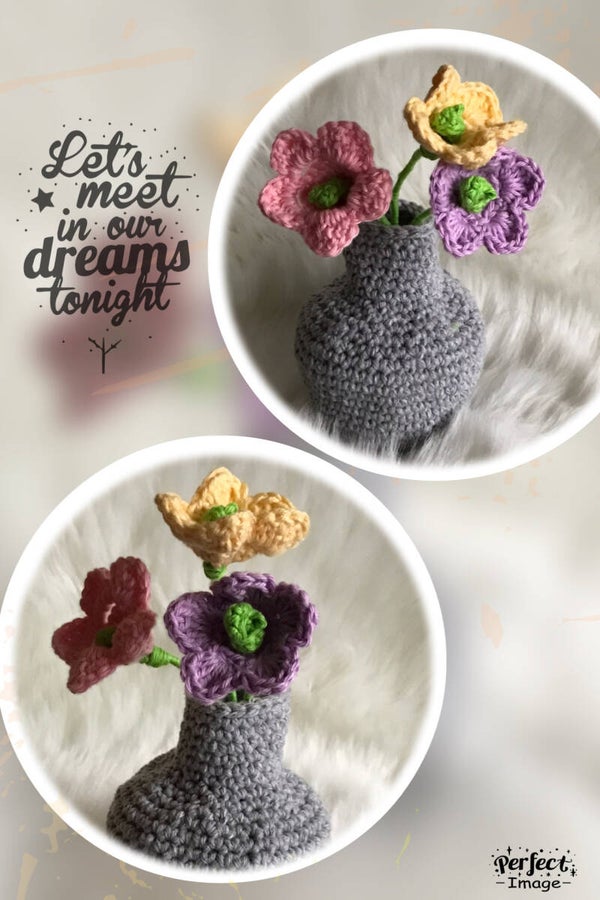 Haakpatroon bollebuik vaasje met trosje bloemetjes in pasteltinten