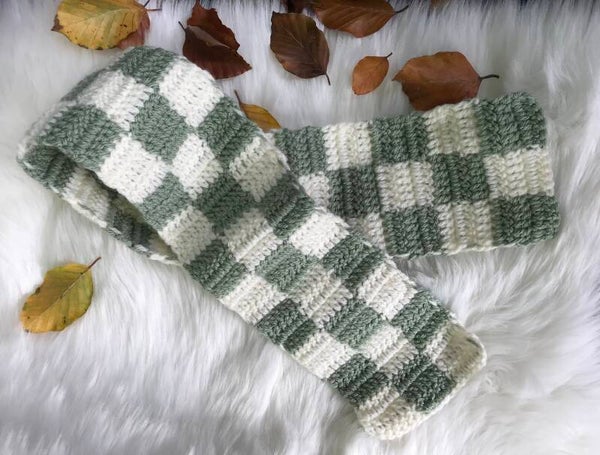 Schitterend setje van geblokte babysjaal en wantjes! De babysjaal kan ook in elke andere maat gemaakt worden en de wantjes in: