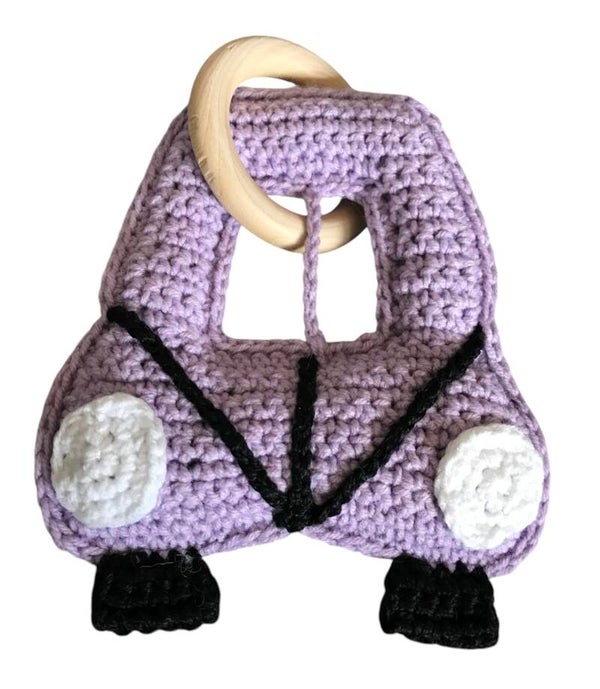Haakpatroon bijtring paars autootje