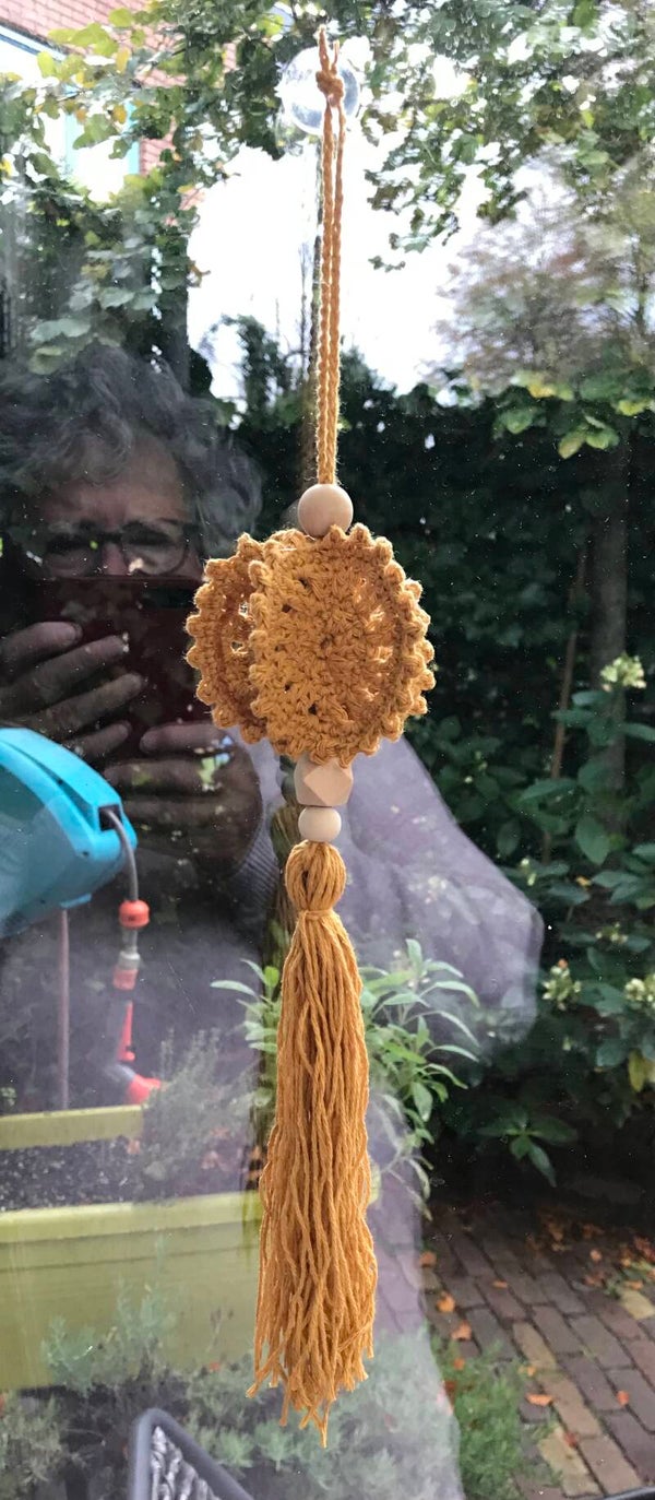 Haakpatroon van een prachtige kersthanger of voor alle dagen! Hang hem voor het raam of aan een kast.
