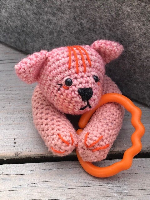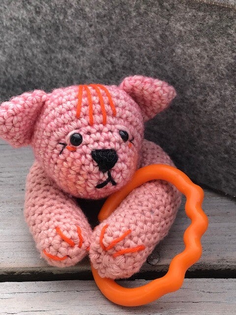 Maat: De kitten van voor naar achter 10 cm en ongeveer 7 cm hoog. Alles wel afhankelijk van de hand van haken en het gebruikte materiaal!