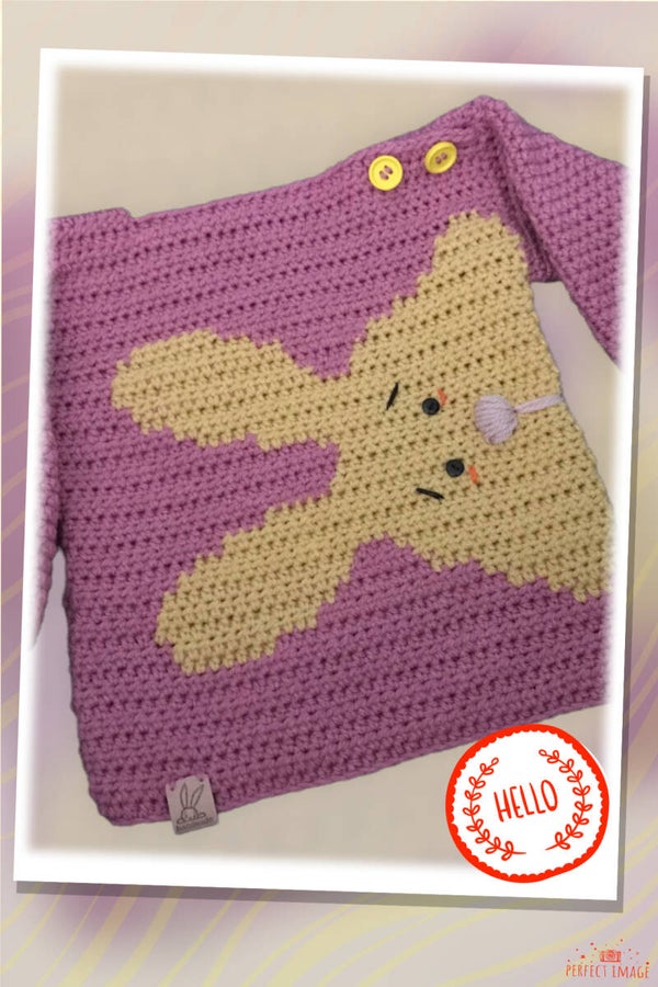 A beautiful pattern of a sweater with a naughty rabbit!Sizes included6-12 months/ 1-2 years/ 3-4 years/ 5-6 years.