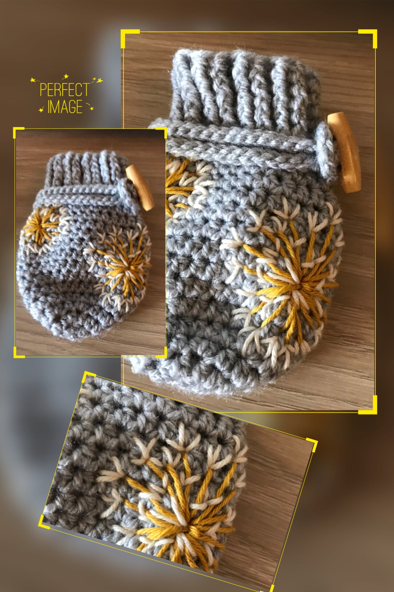 Prachtig haakpatroon van mooie geborduurde wantjes.