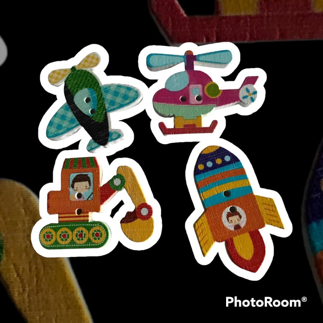 Deze schattige knoopjes zijn superleuk om op een muts of shirt te naaien. De meeste zijn te groot of te lang om als echte knopen te gebruiken. De grootste is 3 bij 2,5 cm. Ze gaan per vier.
