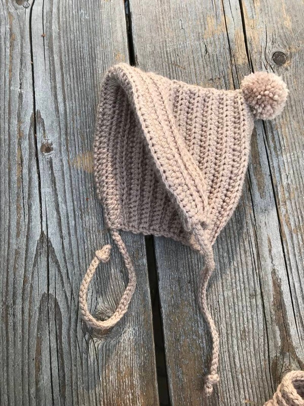 Haakpatroon geribbeld setje van muts en wantjes