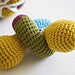Haakpatroon voor het babyspeeltje de knoop. Dit is een al eerder ontwerp van Tjeempie, nu in een nieuw jasje! De knoop piept en rammelt! Het speeltje bevordert de tastzin van de baby!